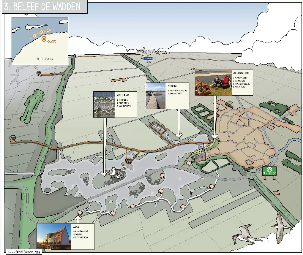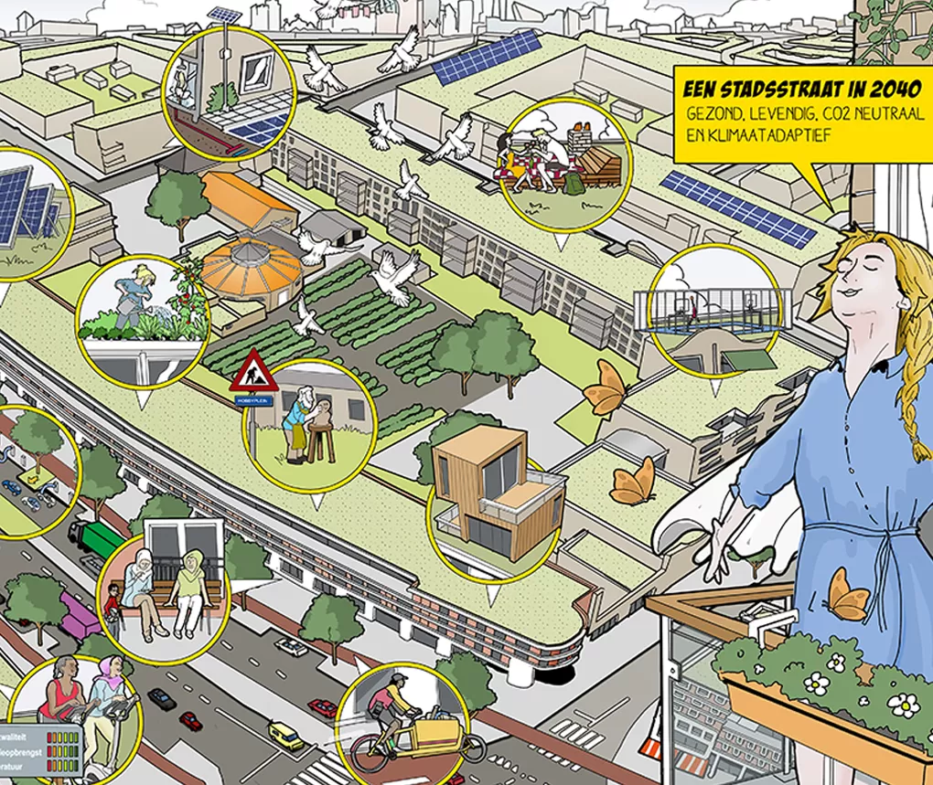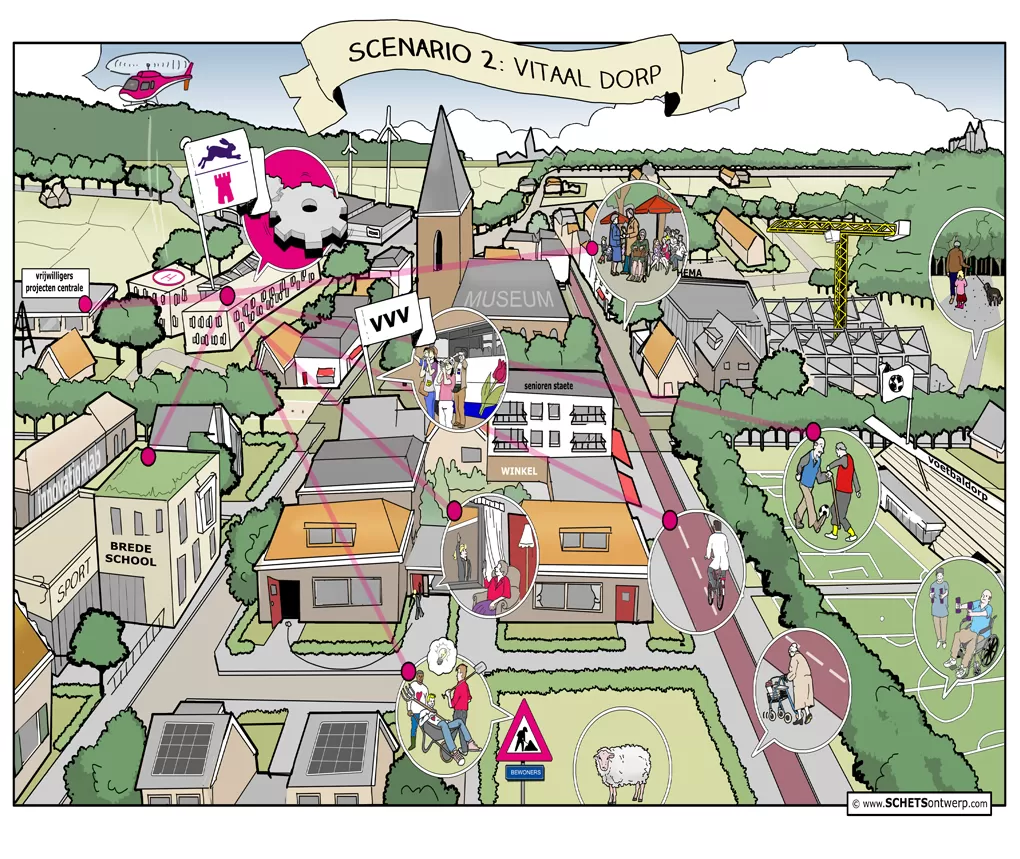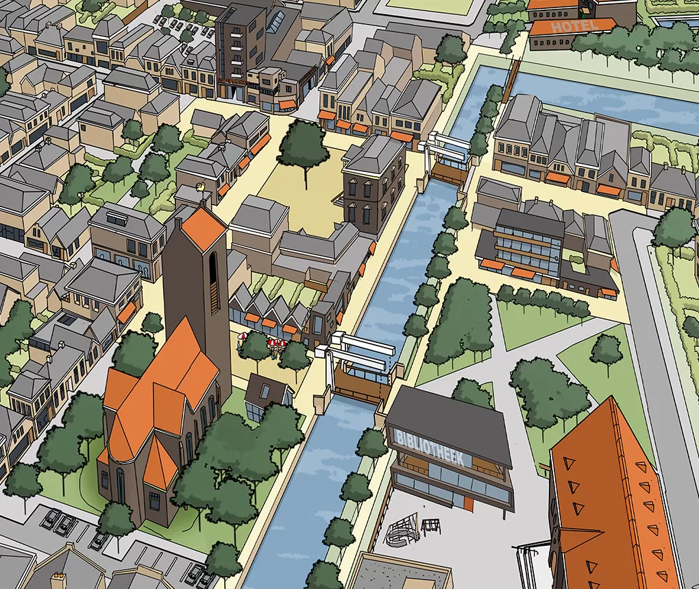 Sommige ideeën, studies of problemen zijn (nog) niet concreet genoeg voor een “echt” ontwerp. Denk aan duurzaamheids-strategieën, krimpscenario’s, ontwikkelkansen of stedelijke dynamiek. Een cartoon van fictieve ruimtelijke setting, waarin deze ruimtelijke verhalen zich afspelen, kan helpen om uw abstracte verhaal te vertellen.